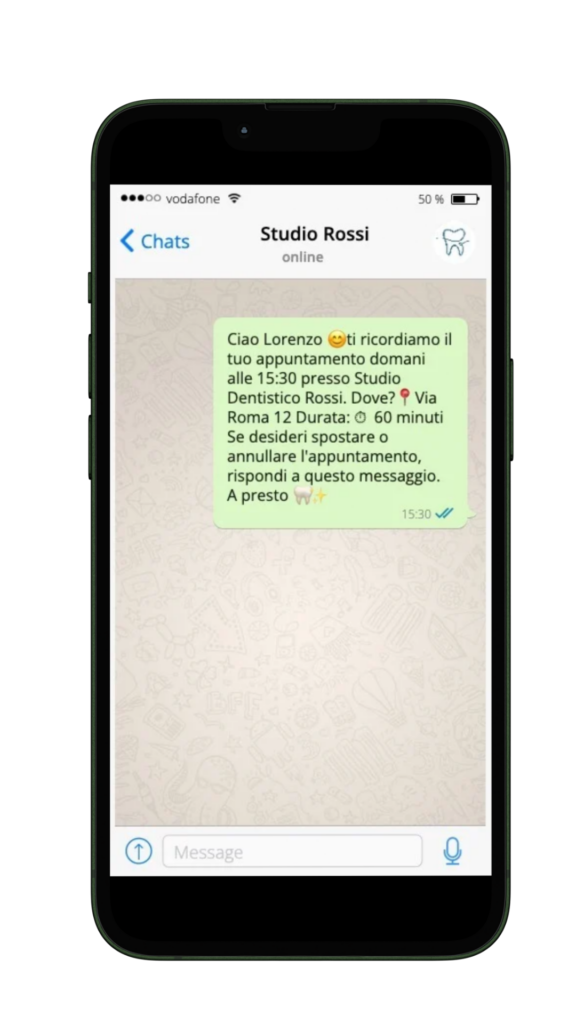 Invia promemoria automatici prima dell'appuntamento, aiutandoti a ridurre mancate presenze e ritardi